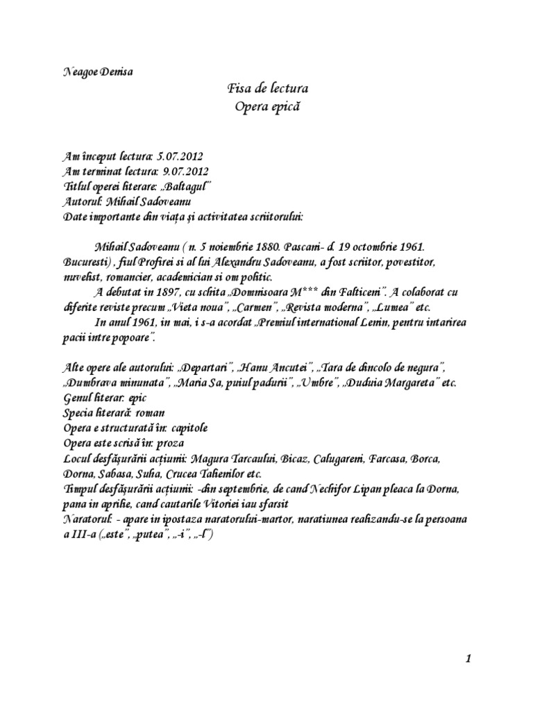 Baltagul Fisa De Lectura