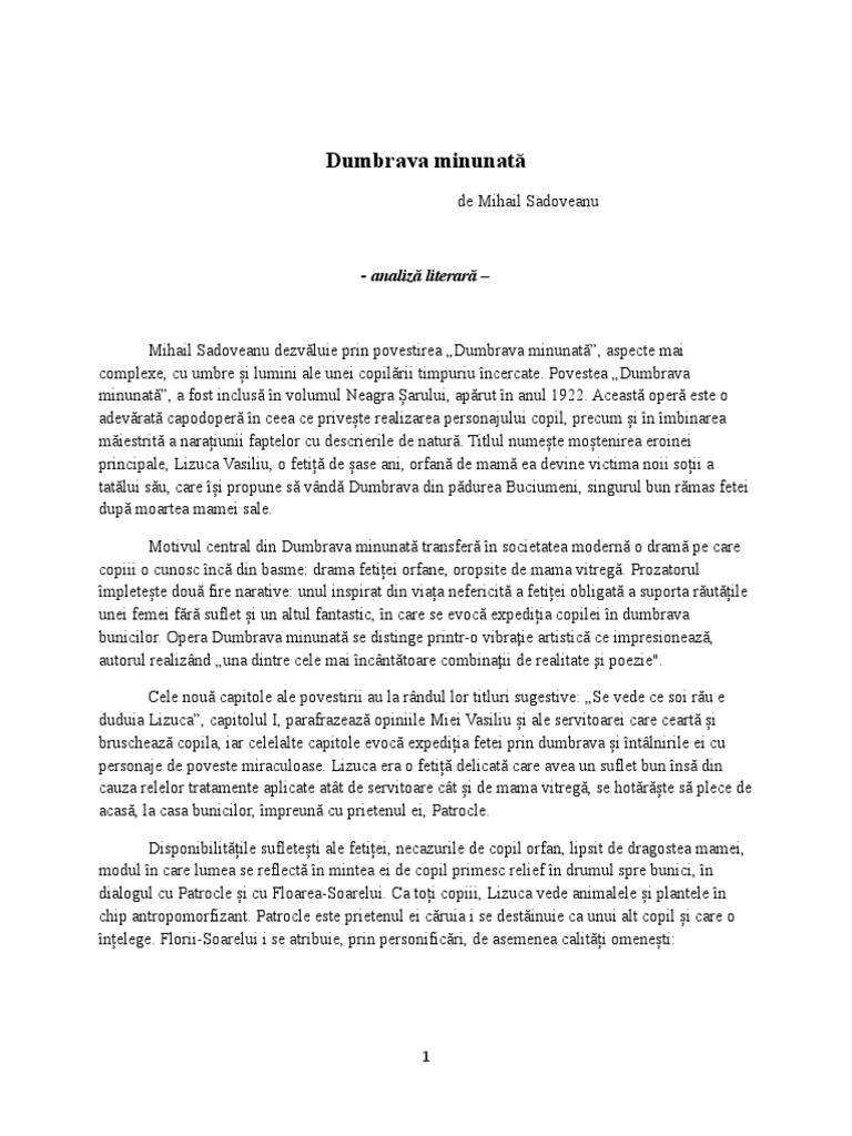 Dumbrava Minunată Referat Literatura1