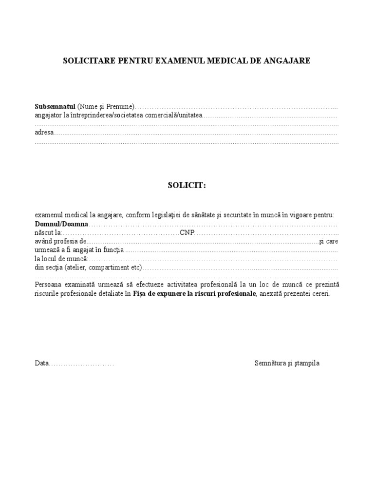 Fisa Solicitare Examen Angajare