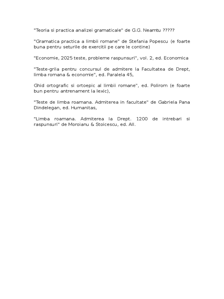 Lista Carti Necesare Admitere