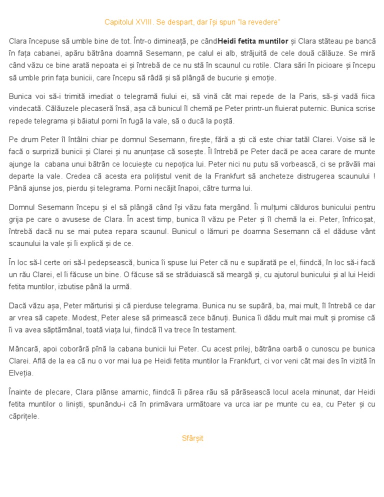 Johanna Spyri Heidi Fetita Muntilor Partea 1 Pdf Document
