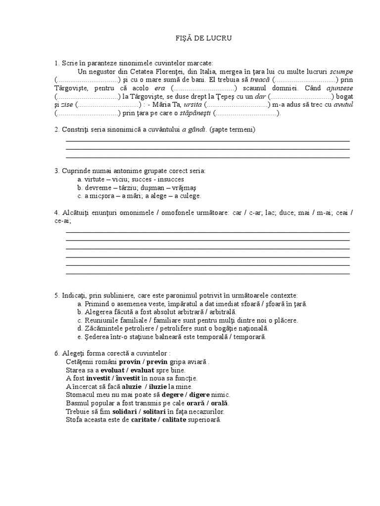 Exercitii De Fonetica Si Vocabular Clasa A Viii A Reactualizarea Cunostintelor Septembrie
