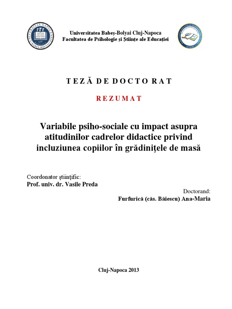 Rezumatul Tezei De Doctorat Doctorate Ulbs