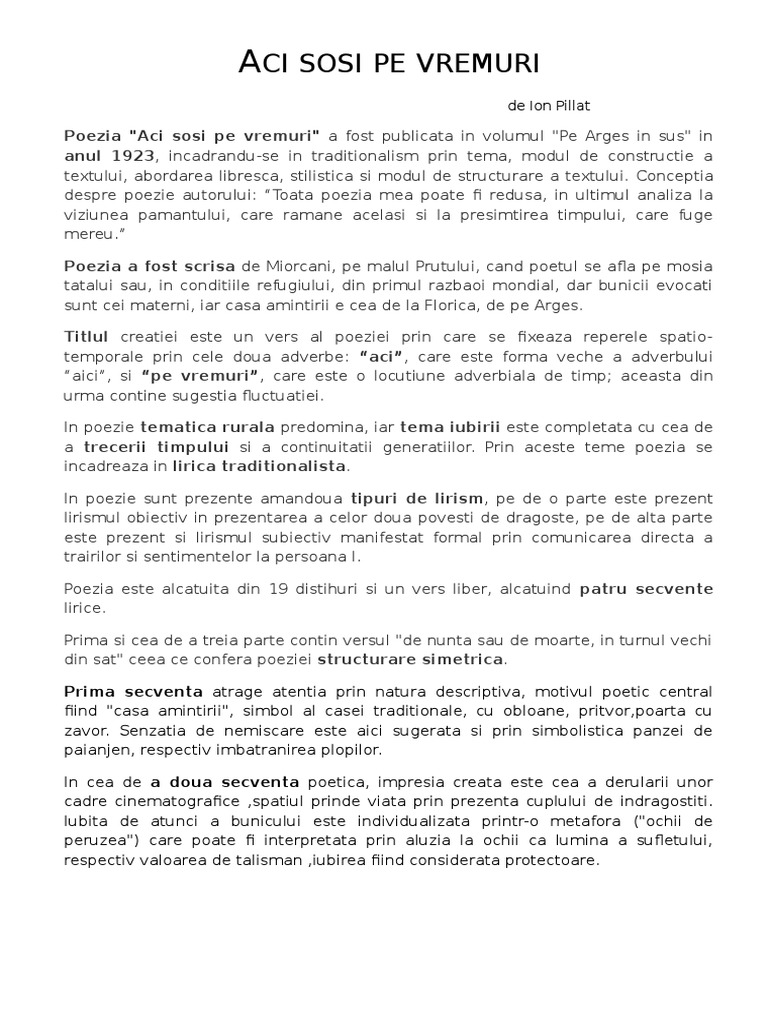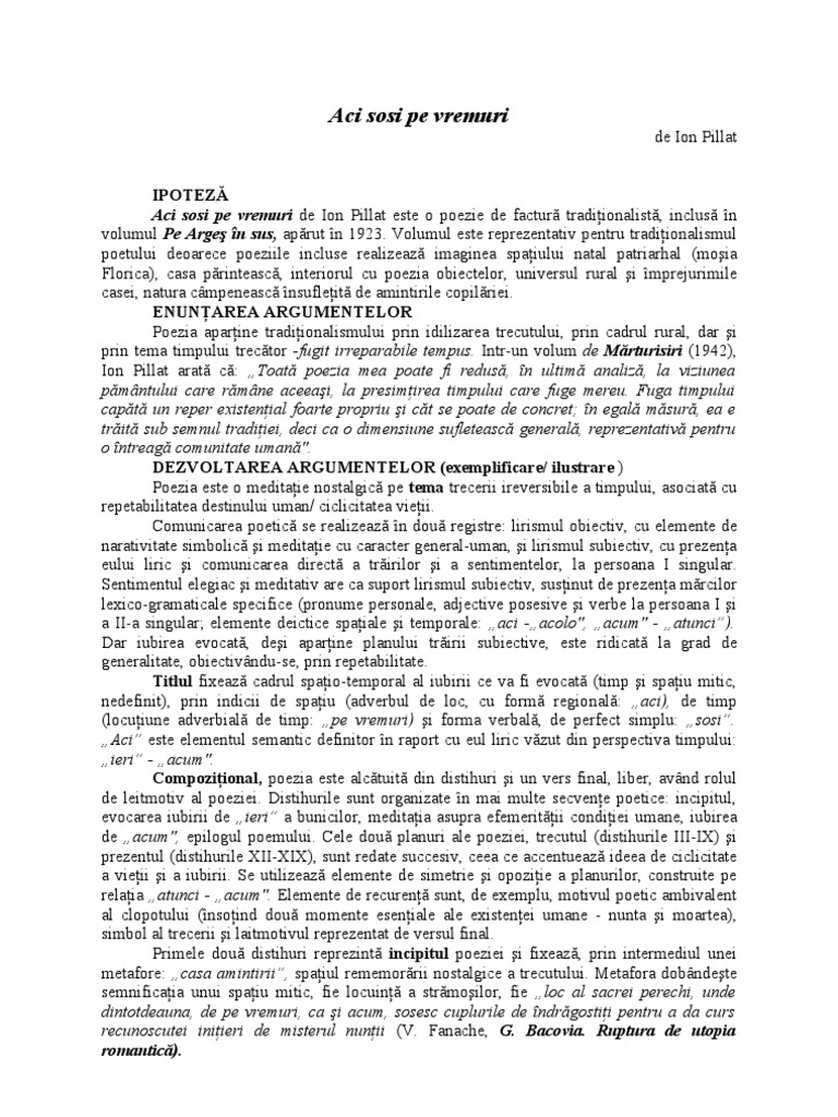 Aici Sosi Pe Vremuri Ion Pillat University Of Iași Studocu