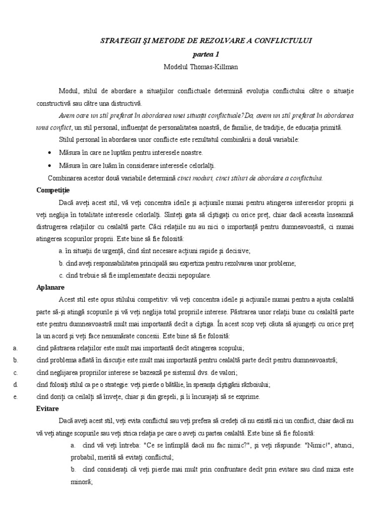 Strategii Si Metode De Rezolvare A Conflictului