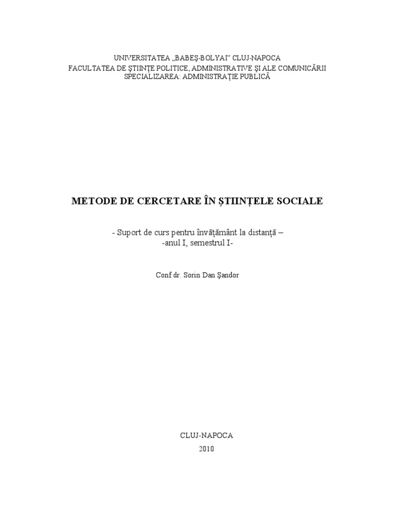 Metode Si Tehnici De Cercetare In Stiinţele Sociale Sorin Dan Sandor Pdf Free Download