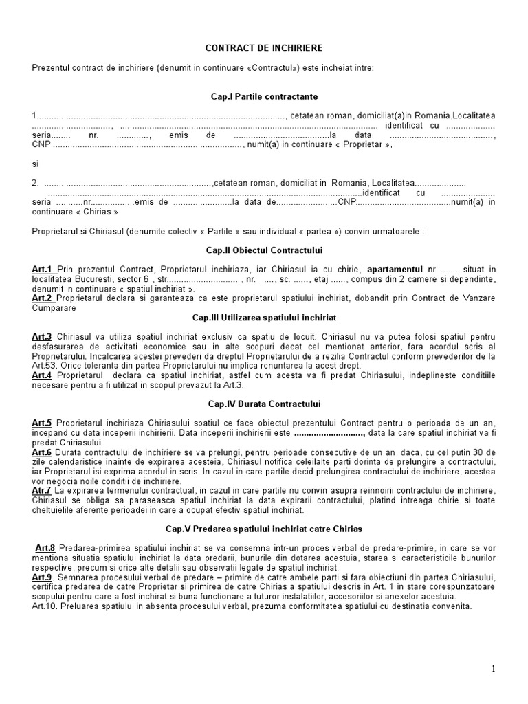Contract De Inchiriere Apartament