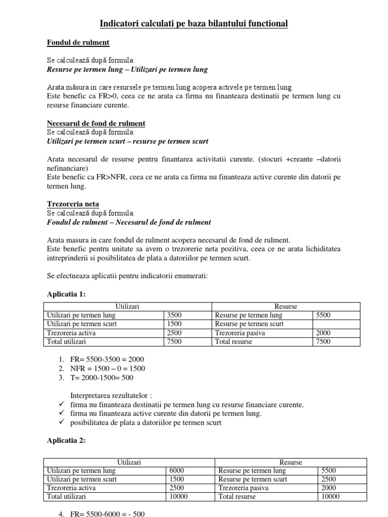 Fisa De Lucru Eu Indicatori Calculati Pe Baza Bilantului Functional