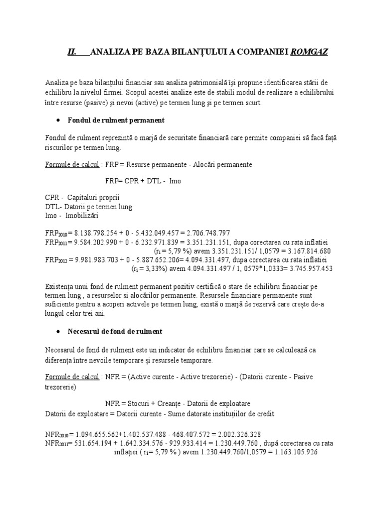 Analiza Pe Baza Bilanțului A Companiei Romgaz