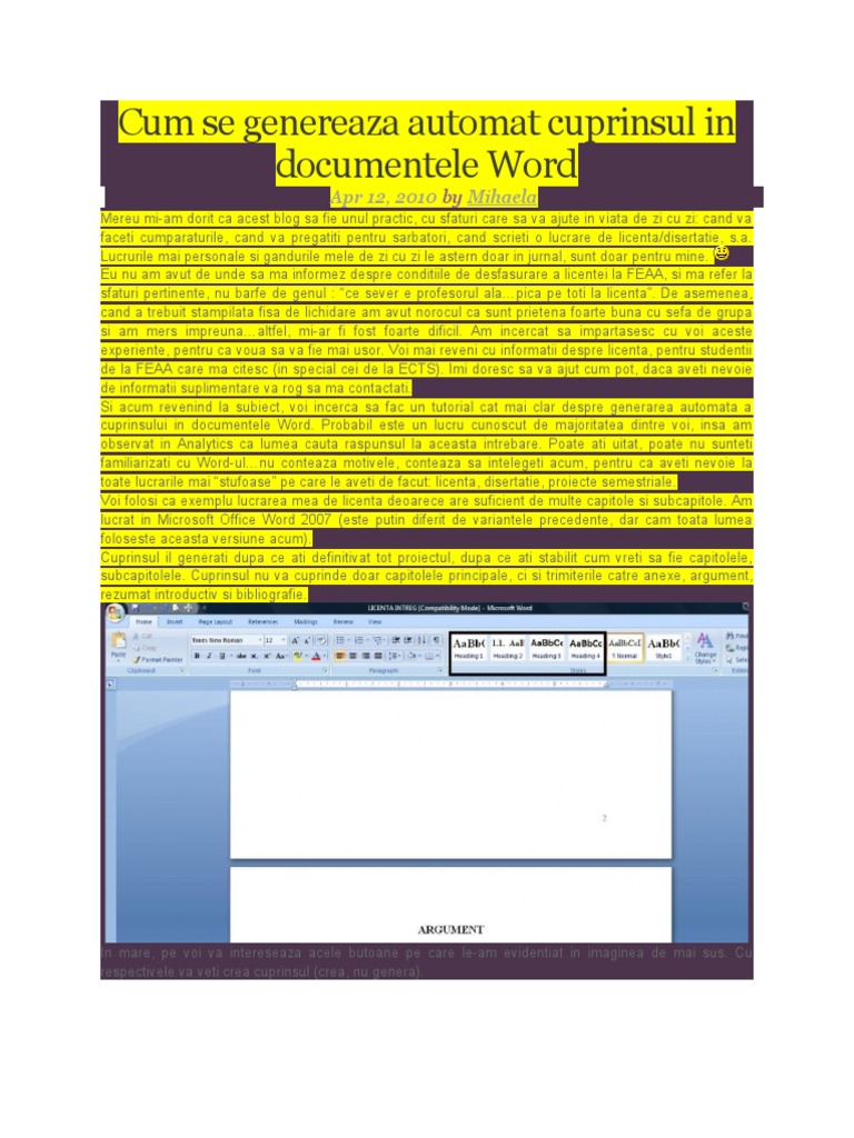 Cum Se Genereaza Automat Cuprinsul In Documentele Word